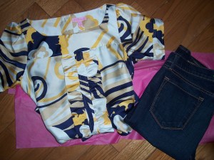 The print on this pretty silky top caught my eye in the window of Pink Pelican, the Lilly Pulitzer shop in Huntsville, Ala. (next to Fresh Market at the intersection of Whitesburg and Airport). It seemed like the perfect summer-transition-fall piece — and it was! When you think of Lilly Pulitzer, of course you think Palm Beach, pink/green and preppy. I fit none of those descriptions, but I fit into this top beautifully, so it had to come home with me. Besides, isn’t it important to overcome style stereotypes? I’m taking a stand for fashion, expanding my clothing vocabulary. At least, that’s what I’ll tell my husband, although he’ll point out that the only thing I’m expanding is my closet. So I won’t even tell him that also at Pink Pelican I found some of the best jeans I’ve ever put on: a pair of J Brand bootleg slim-fit mid-rise. If you’re like me and have trouble finding well-fitting jeans that look as if they were made in the 21st century, please give J Brand a try. You’ll be amazed. Poorer, but amazed. Visit Pink Pelican online at www.thepinkpelican.com