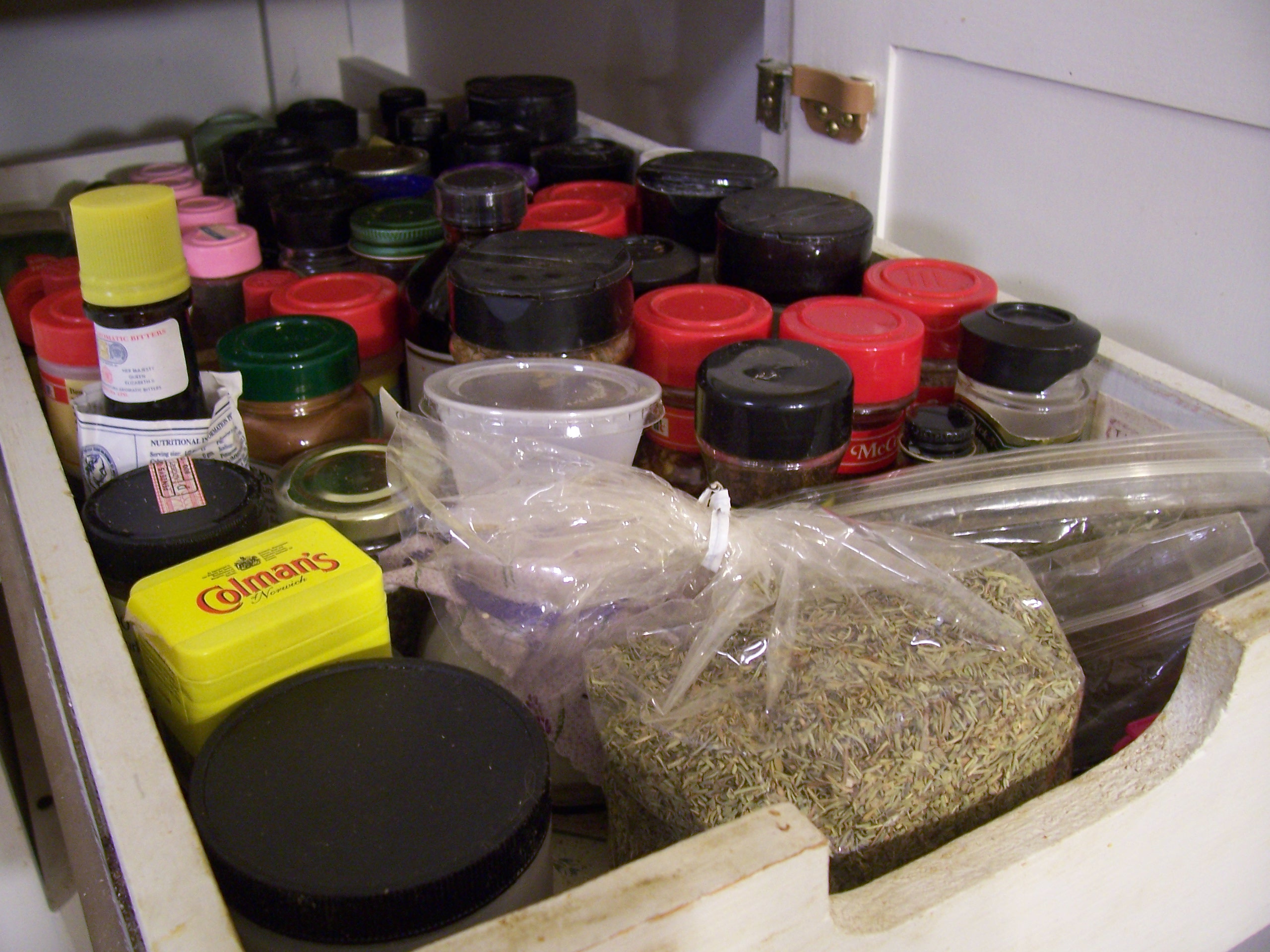 I cleaned out my spice drawer this week! I’m so proud of myself!!! Isn’t the newly organized and easily accessible drawer a a work of art now? I mean, I know it’s not alphabetized or arranged in descending order of expiration dates, but you have to admit it’s about 40 times better. Remember what it looked like before? Yuck — the sorry result of unbridled optimism that this might be the night I actually will make Nigella Lawson’s Honeyed Almond and Orange Cake with Figs … if only Survivor and Ugly Betty weren’t on. I have my priorities, after all, right? But after writing about it in my TimesDaily column today, I realized how pathetic it is to hold on to chili powder from 1983 and that it all had to go: http://www.timesdaily.com/article/20081120/ARTICLES/811200346