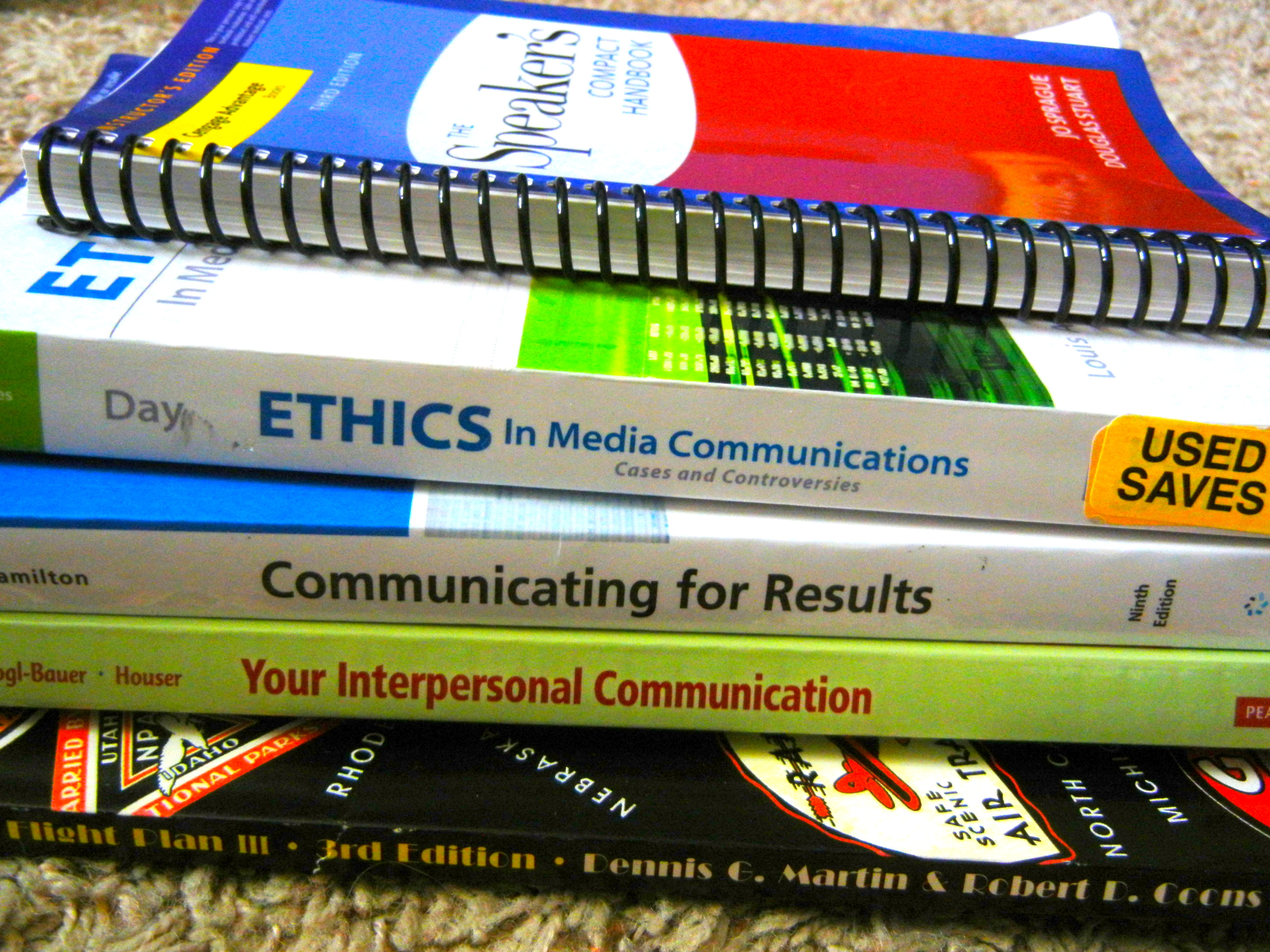 where you somehow were asked to teach a media-writing class cleans out his office and leaves a big box of used books in the lobby with a “Free to good homes” sign and it’s like a mega sale at T.J. Maxx — you are THAT excited. So you pull the box over to a nearby chair and ignore the student chatter around you and delve into the treasures: “Ethics in Media Communications”! “Communicating for Results — A Guide for Business and