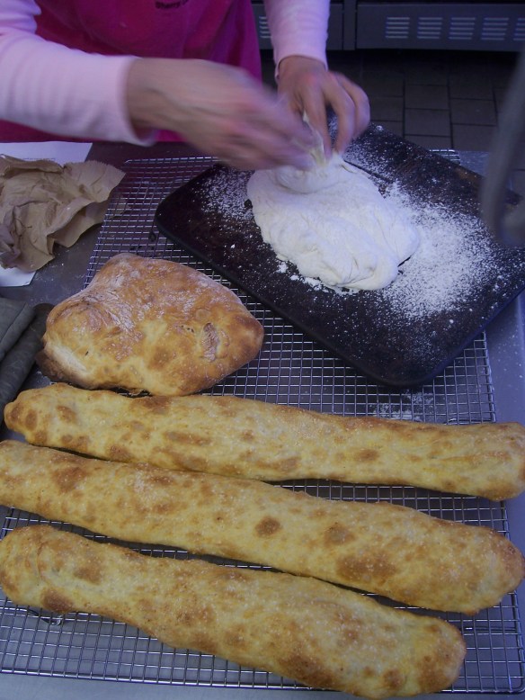 suffer from yeast phobia and break down in tears at the thought of controlling water temperature and room temperature and oven drafts and all those other variables that affect bread quality. And I’m not talking about bread machines, either. I think we can all agree that those weirdly consistently rectangular loaves never can be confused with real homemade. But there’s a way to do produce yeast bread perfectly every single time. It’s called the no-knead method, and it involves a wet dough you stir up and then let rise for almost a whole day, resulting in a freeform artisan bread that needs to be eaten that day. But you’ll never have to worry about it going stale because I promise when you make bread with this method, you’ll gobble up every crumb within minutes. I’m speaking from personal experience here — well, the gobbling up part, anyway. My friend Sherry Campbell, director of the kitchen-incubator Shoals Culinary Complex in Florence, Alabama, gave a class on this method recently and everybody was impressed. It’s easy and simple and requires equipment you probably already have on hand — or can pick up inexpensively. There rarely is breaking news in cooking, but this method got lots of attention a couple years ago when cookbook author Mark Bittman, who writes The Minimalmist column in the New York Times food section, reported on his success with the no-knead techniques perfected by Jim Lahey, a New York restaurant owner and chef. Here’s Bittman’s original article, http://www.nytimes.com/2006/11/08/dining/08mini.html (which I was shocked to see actually came out almost four years ago instead of the two I was thinking in my head), and more photos and a story about Campbell’s class from the Florence newspaper, http://www.timesdaily.com/article/20100324/ARTICLES/3245001.