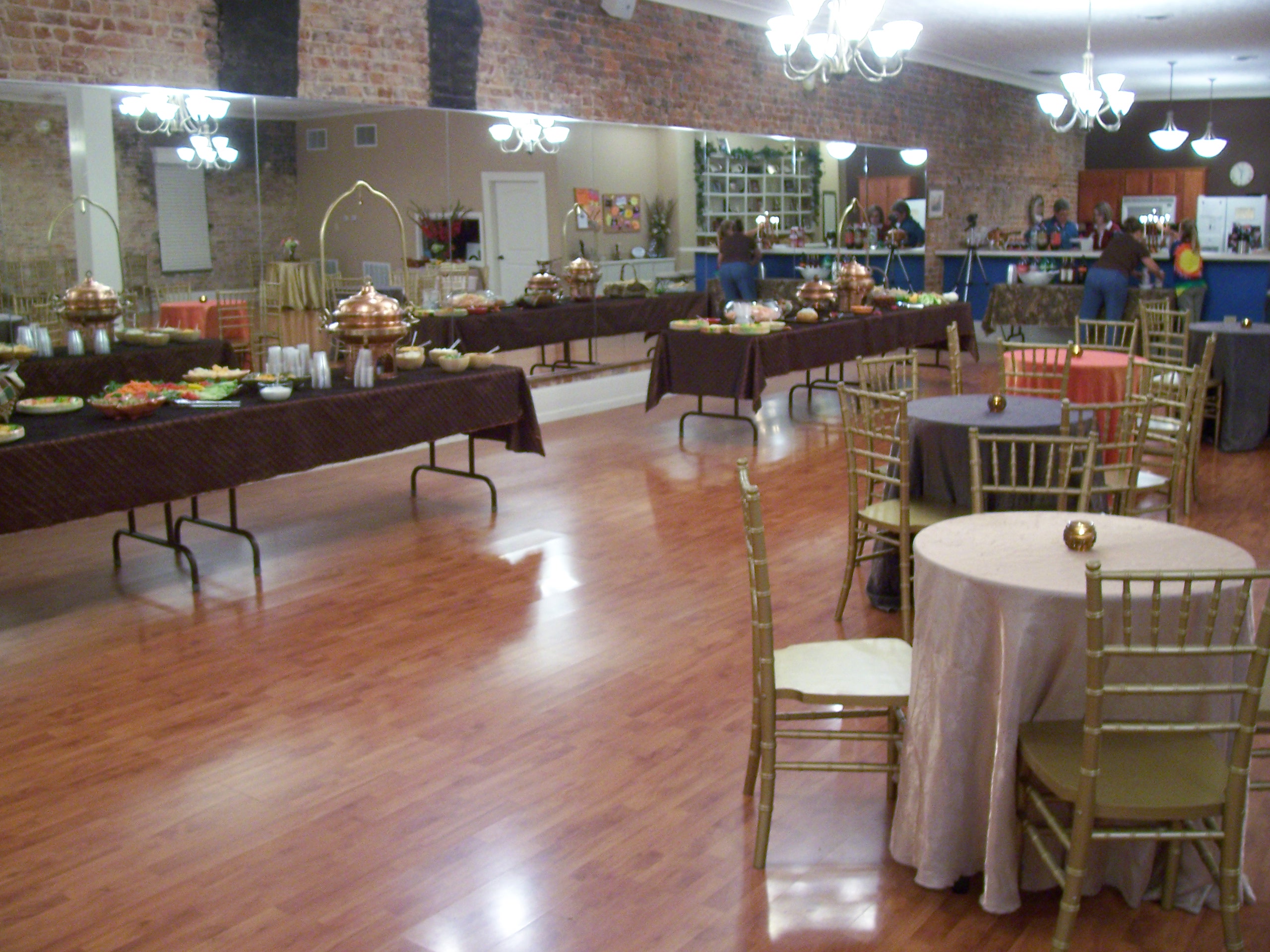 hosted in Tupelo, Mississippi, this past weekend, I was blown away by this gorgeous space. It’s the Dance Studio in downtown Tupelo and it is really a dance studio as well as perfect party room. The gleaming wood floors and exposed brick walls were the background for soft fall colors of golds, browns and oranges. There was dancing, wine, good company and good food: Vegetable soup, fried chicken, a mashed potato