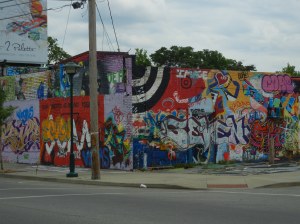 know nothing about that last item, a whole heckuva lot about the middle two (more to come on these topics) and only a little about the first one. But enough to be really annoying appreciate what artists do. And in Chattanooga, art literally is everywhere — from sidewalks and playgrounds to innovative museums. You gotta love a town that encourages folks to paint on its walls. Even the buses have art instead of the ubiquitous ads. Go and see for yourself. Coming up next: Chattanooga food, Chattanooga shopping and more Chattanooga art. Have I mentioned that I adore this town?