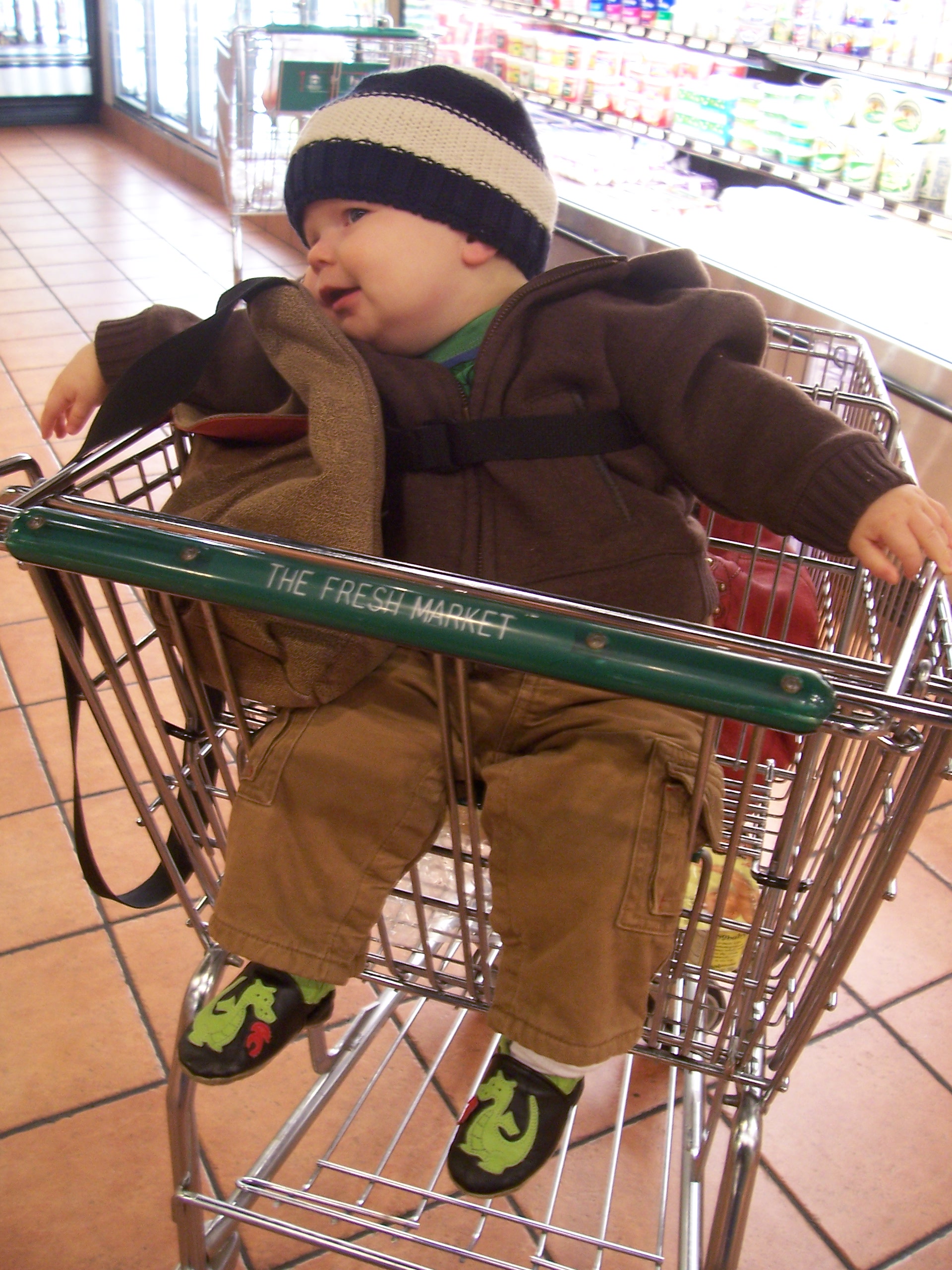 was girl clothing that got all the attention — smocking and embroidery and ribbons and ruffles — but now I think that boy clothing has caught up, style-wise. And just in time, too, for our grandson to be one of the most fashionable little guys on the nursery circuit. Little-boy clothing departments are full of miniature cargo pants with tons of pockets, cozy hoodies, cute T-shirts and of course Robeez shoes. I’d never heard of Robeez until my daughter was expecting and she showed me these precious soft shoes with colorful and fun designs for babies and toddlers — a far cry from those stiff white lace-up shoes she had to wear. Our grandson (also known as Capt. Adorable) is wearing his dragon Robeez in the photo — they seem to among the few pairs of footwear he doesn’t/can’t kick off immediately. I think the “Busy Car” pair also is a must-have, and we’ve got a couple others on our shopping list. Now that he’s standing on his own and considering this thing called walking, shoes are becoming more important — he usually gets by with bare feet or just socks — and of course when it’s 20 degrees like it is today, shoes are a must. Thank goodness for Robeez — pulling those white leather shoes on and (attempting) to get them tied was exhausting! Check out the Web site, http://www.robeez.com.