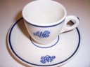 bid limit and stick to it. 3) But don’t let anything you really want get away. I was awestruck by my mom’s smooth confidence and discerning eye. She would merely raise her hand a bit to bid. A horizontal slash of her hand meant a half-bid increase and a slight shake of her head meant she was done. But it wasn’t all sitting. My dad and I were the “toters,” grabbing paper and boxes to wrap up Mom’s successes — she likes glassware and linens (much easier to pack) — and then toting them out to the truck. Business as usual for my dad, but I was startled at how much physical labor antiquing demands. I got rewarded, though. My mom won this old McCoy pottery bowl I liked and then gave me one of three white-and-blue china demitasse cup-and-saucer sets she’d bought for my brother. Sold!