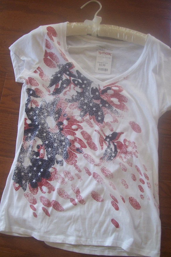 when it comes to the Fourth of July are eating and wearing all things red, white and blue? I mean, fireworks are fun and cookouts are cool, but give me an artificially colored sugary treat and a patriotic T-shirt made halfway across the world and I’m happy. Seriously! I’m not being sarcastic here … well, maybe a little bit. But these incredibly yummy cupcakes were made with care and sold with joy at a small and local family bakery — the lemonade one especially is delicious with its tart and refreshing burst of lemony flavor. And the T-shirt, priced at $5.99, came from a discount store that has successfully brought style within reach of almost all budgets. So, in celebrating our national birthday, I’m also honoring our quintessential American values of capitalism, entrepreneurship and democratization. On the other hand, you could point out that I’m contributing to the growing problems of obesity and job loss. But here’s the thing: I’m free to do that. I’m free to shop for cupcakes anywhere I want to and eat as many as I feel I can. (Are all four too many? Please say “no.”) I’m free to go anywhere I want on a T-shirt search and buy anything I can sneak into the house without my husband noticing that fits into my budget. Free to do pretty much what I want to do. Free. To. Do. What. I. Want. I don’t always make the best choices, but at least I’m free to make them. Thank you, Founding Fathers and Unheralded Founding Mothers. Happy Birthday!