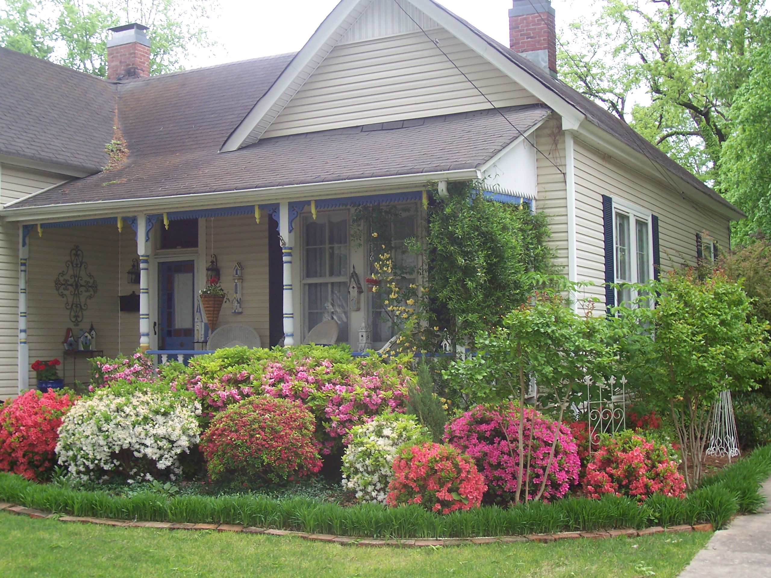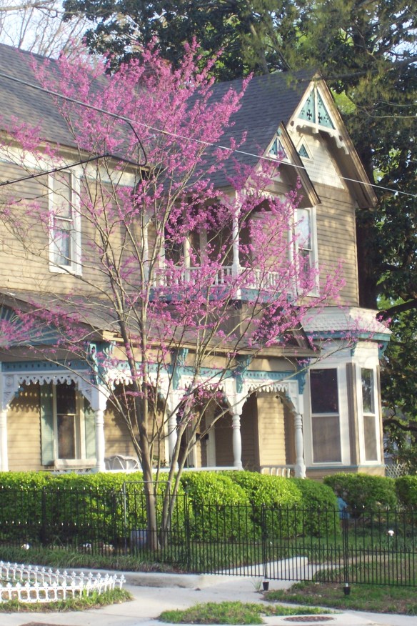 wonderful historic neighborhoods that doesn’t get as much attention as it should. It sort of loses out against such publicity stars as Natchez, Mississippi, for instance. And I’m one of the worst offenders. For folks in northwest Alabama/northeast Mississippi, Decatur is “on the way” when driving east to Huntsville. Usually I’m on a schedule as I roll by the edge of downtown and I glance out the window and think, “That is so pretty. Sometime I really should come here and explore.” Because otherwise I’d miss gems such as this cottage tucked away on a quiet side street. Couldn’t you just open the gate and walk up the steps and go sit a spell on the porch? I really had to restrain myself to keep from trying out that rocking chair. There are two adjacent historic districts in downtown Decatur — Old Decatur and New Albany — where you can park your car and enjoy an afternoon of wandering through neighborhoods of cozy Craftsman cottages and stately Victorian homes. And with spring in glorious bloom right now, it’s the perfect time: Peaceful and quiet and breathtakingly lovely. There are plenty of spots nearby for shopping and eating, too, with no drive-thru lanes or mega-parking lots required. Not that there is anything wrong with drive-thru lanes and mega-parking lots. But sometimes a shady porch and the sweet smell of camellias is all you need. At http://www.decaturcvb.org/, print out self-guided walking tours and get details on the upcoming Mayfest.