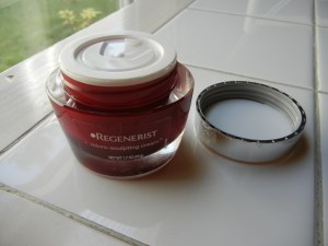 us. Packaging that delights in not being what it seems. Packaging that says, “We, the big corporate skin-care people, sit around a table and think of ways we can squeeze every single dime out of you, our clueless & inattentive customers. Because we think you basically are stupid.” Because that’s exactly how I felt when I opened up this jar of and realized that what I saw was not at all what I got. See, you think that when you buy this product, you’re getting a jar full. Wrong! There cleverly is a hidden smaller jar inside the outer jar — a maneuver that effectively cuts the amount you thought you were purchasing by … oh … say 15 or 20 percent? And I know, I know — the actual amount of the product is clearly and accurately marked on the packaging. But, really, who thinks, “Well, it says ‘1.7 ounces,’ but clearly this jar holds less so I won’t be surprised when I open it and find evidence of marketing trickery!”??? Nobody, that’s who. I’m sure there’s a survey somewhere that says this size jar is the size customers prefer. And then when filling that size jar endangered the profit margin, some smart employee came up with this chicanery. I am shaking my head in disgust … but of course my skin stays smooth and resilient despite the frowning and wrinkling this stunt has caused. And that makes me remember I’m nearly out of Regenerist Micro-Sculpting Cream and probably need to get some more. Sneaky, Oil of Olay — very sneaky.
