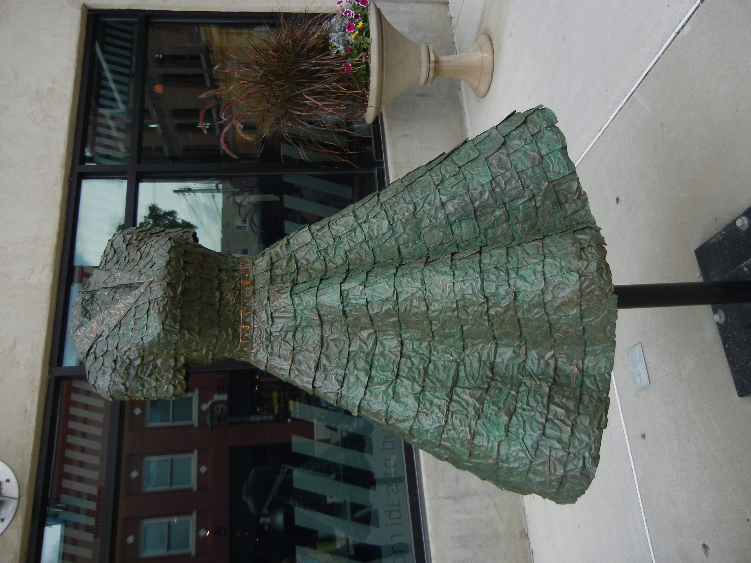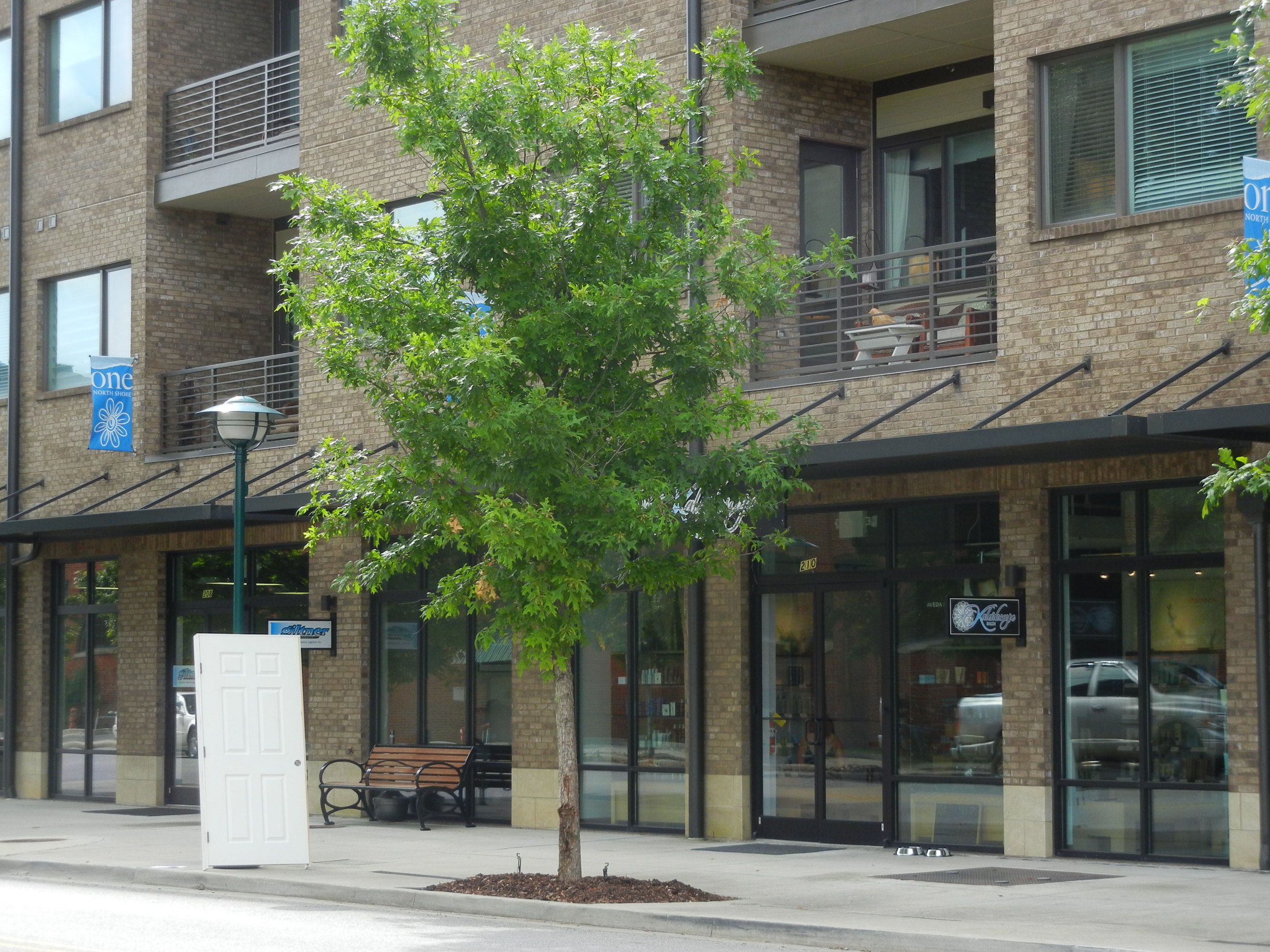 that’s a different post.) Art is everywhere here. It oozes out of museums and galleries and spills out onto walls, buses and anywhere there’s an inspiring blank space. Such as sidewalks. In the emerging Southside Art District, for example, simply walking along immerses you in all sorts of innovative artistic minds. Sculptor John Petrey, for instance, is known for his dress series, and one of his astonishing works is just standing right there. You can walk up to it and inspect it and touch it all you want. Yea, art for the people!!! And then there was this wooden door propped up against a lamp post on a sidewalk in Northside, Chattanooga’s cool hipster alter ego. Younger Daughter and I were walking to Greenlife Grocery (which we all know is actually a Whole Foods, although everybody in Northside tries to deny it) when we spotted the door and tried to figure it out. Was it art? Apartment renovation? A magic door that would lead to an alternate universe? We resisted the urge to draw on it since all we had were ink pens and lipstick and, besides, if it did happen to be a magic door leading to an alternate universe, we felt that non-engagement was the proper response.